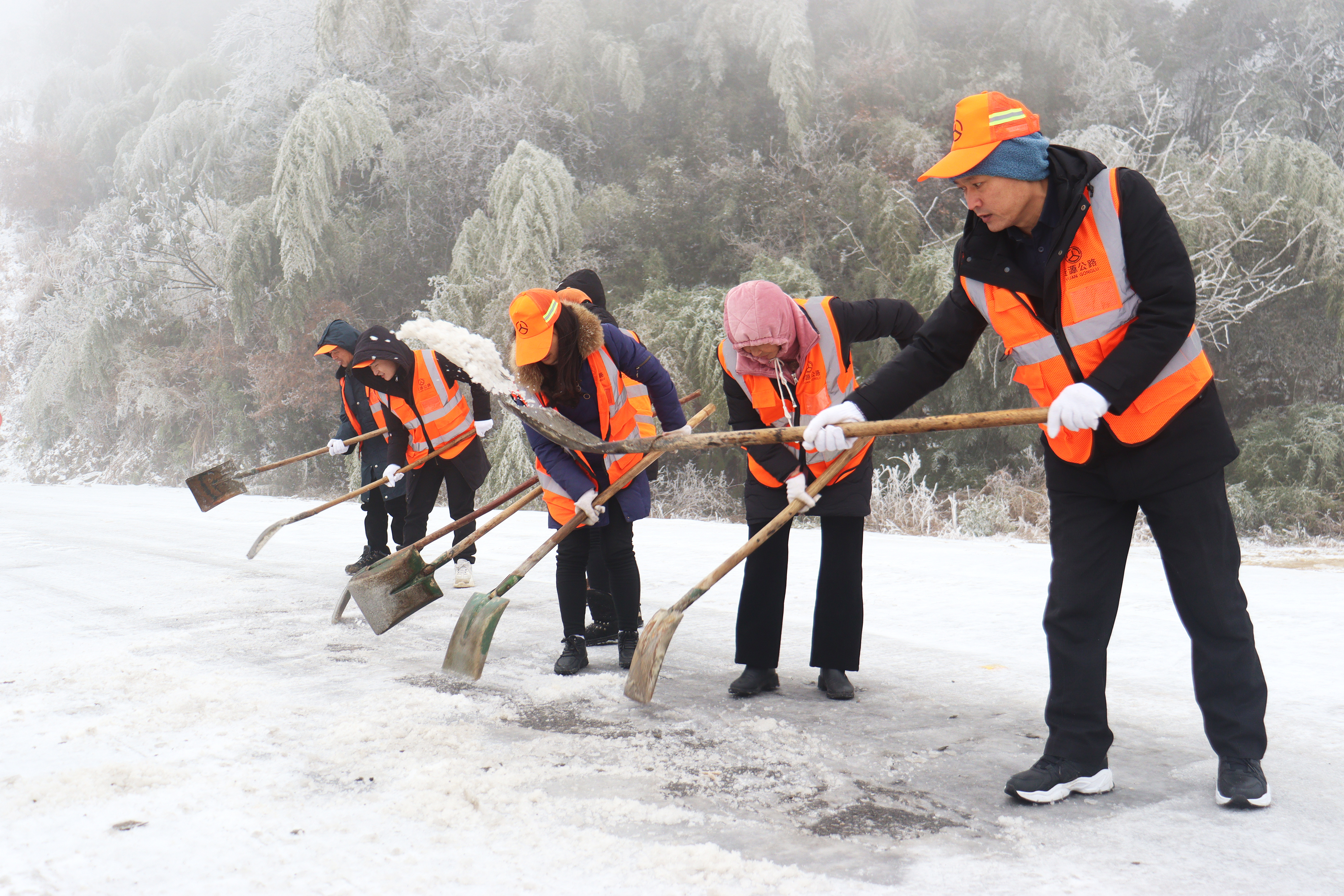 在恶劣天气下,资源公路人顶风冒雪,成立抗冰抢险突击队,奋战在抗冰除雪第一线,在管养的国省干线S202线、G241线、S301线易结冰路段开展融雪作业、清理路面积雪、安全巡查等工作,采用机械为主、人工为辅的清雪方式及时清理行车道积雪,统一调度、分工协作、持续奋战,不间断清除积雪和结冰,但因结冰路段较长,抗冰保畅工作仍在紧张有序地开展中。