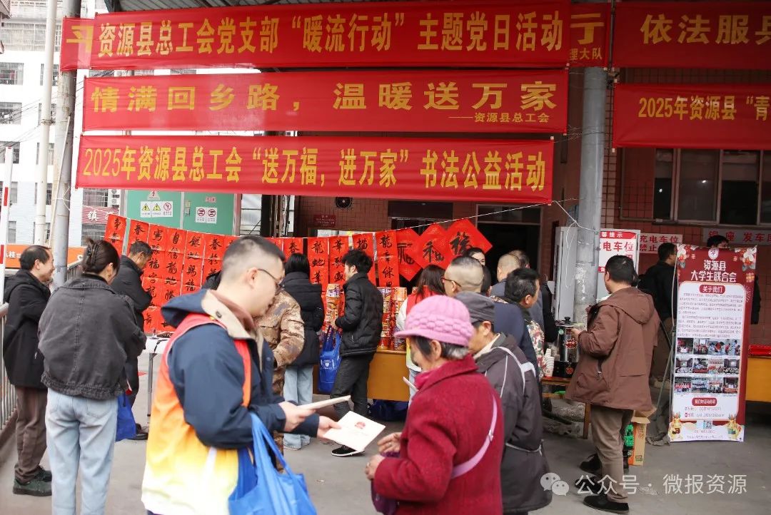 春节的脚步日益临近,外出务工人员返乡潮逐渐进入高峰阶段。为让返乡农民工感受家乡温暖,1月22日,资源县总工会到县汽车总站开展2025年“送万福 进万家”书法公益活动暨“春运暖流行动”系列活动。
