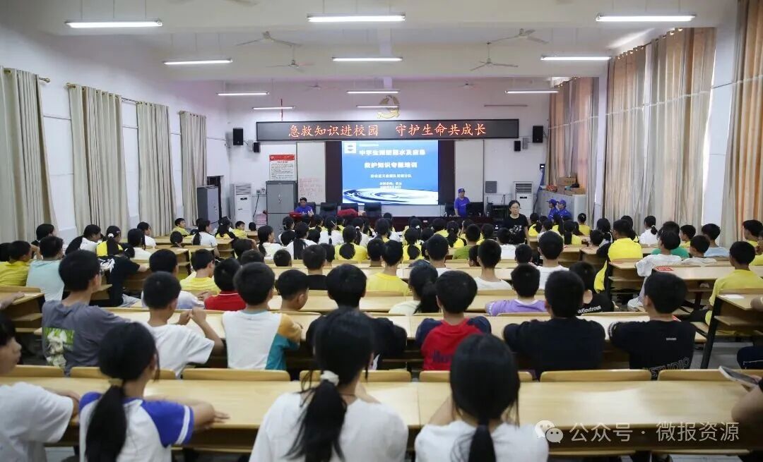 警报结束后,学校还组织消防演练,进一步增强了师生们的应急逃生能力。随后,蓝天救援团队带来心肺复苏和防溺水两个重要课题的宣讲。活动中,专业救援人员现场演示,学生们认真学习,积极参与互动。