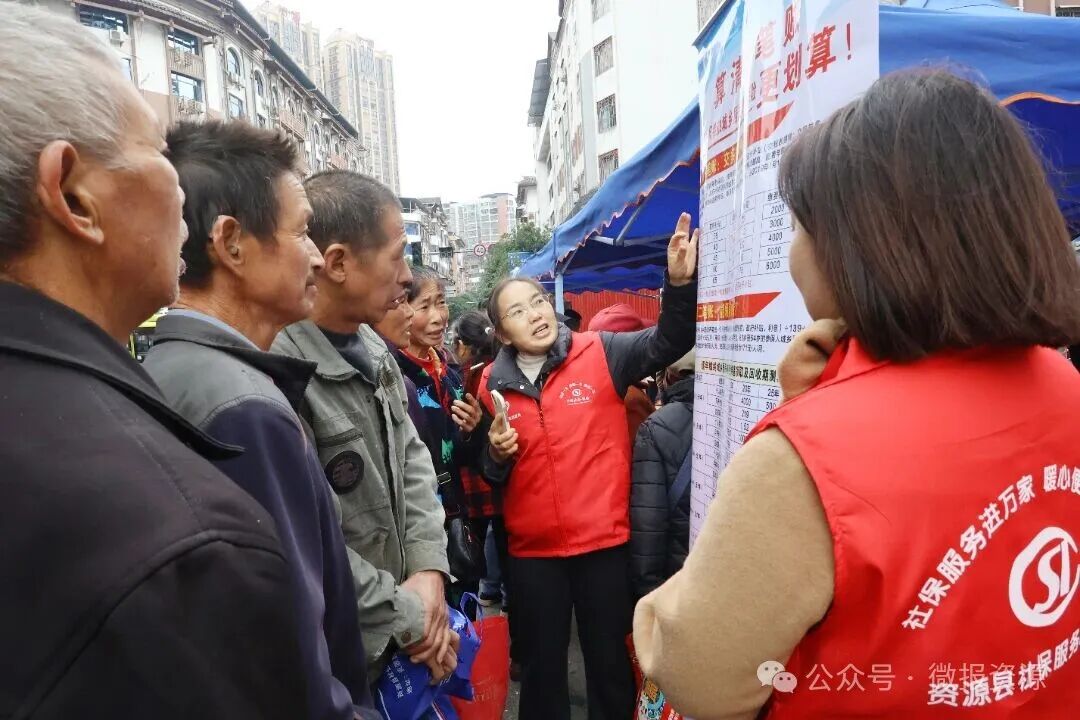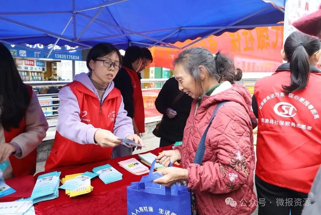 为提升群众对社保政策的知晓率,推动养老保险全民参保,10月23日,资源镇人民政府联合县人社局、县社保中心、资源镇便民服务中心组建专业志愿服务队,在资源县十字街开展2025年“社保服务进万家”活动,通过“定点宣传+入户走访”双模式,将社保服务送到群众“家门口”。