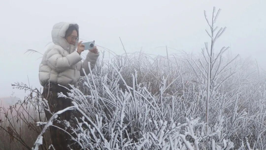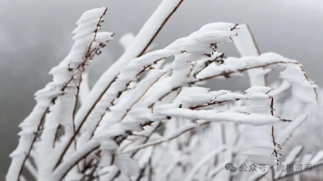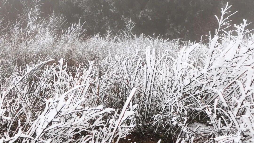 资源县作为广西“北大门”,平均海拔800米以上,隘门界更是以900-1100米的高海拔优势,成为南方罕见的雾凇观赏地。此次雾凇景观的惊艳亮相,得益于跨年冷空气的持续影响。资源县高寒山区最低气温降至-5.2℃,充足的水汽与严寒天气共同作用,让雾凇得以密集凝结、持久留存。漫步山间,冰晶在阳光照射下闪烁着莹白光泽,压弯枝头的雾凇如银花绽放;徒步道旁的竹子凝霜挂雪,形成天然的“冰晶拱桥”,随手一拍都是冬日限定美景。