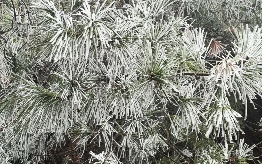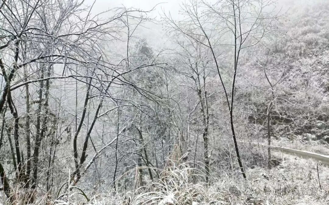 20日下午,资源县隘门界高海拔路段的冰冻景象已十分明显。山间雾气弥漫,寒风裹挟着零星冰粒扑面而来,路面被一层薄冰覆盖,车轮碾过发出“咯吱”声响,车辆需缓慢匀速行驶。道路两侧的树木、灌木挂满了晶莹的冰凌,原本翠绿的枝叶被冰层包裹,形成“冰挂”景观,随手触碰便会有碎冰掉落。路边的护栏、标志杆也凝结着薄冰,用手触摸冰凉刺骨。