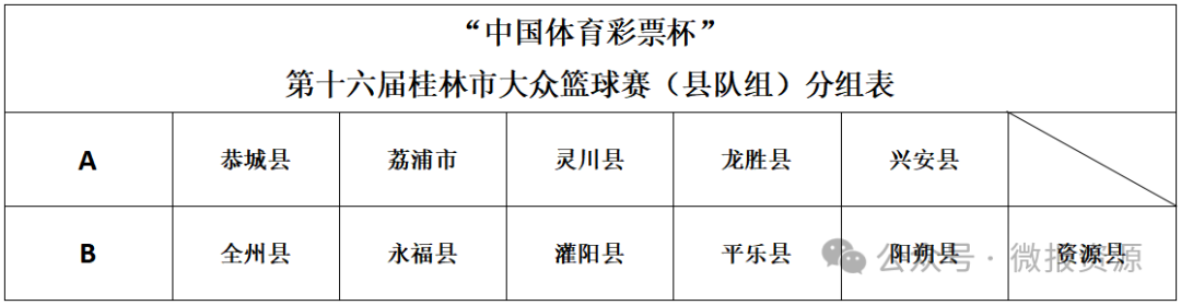 “中国体育彩票杯”第十六届桂林市大众篮球赛(县队组)分组表