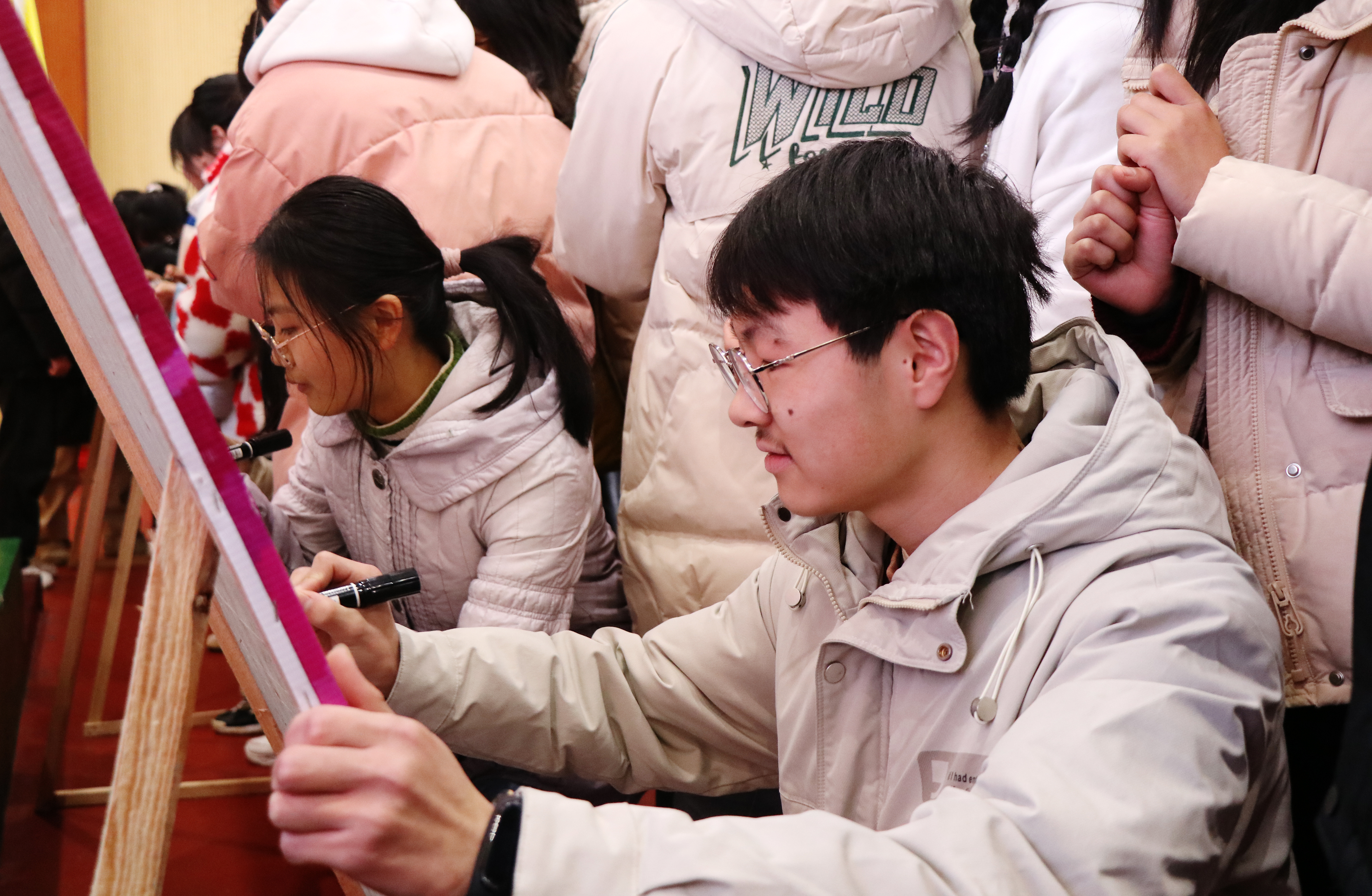 最后,高三全体师生在誓师大会签名板上签名铭志并合影留念。