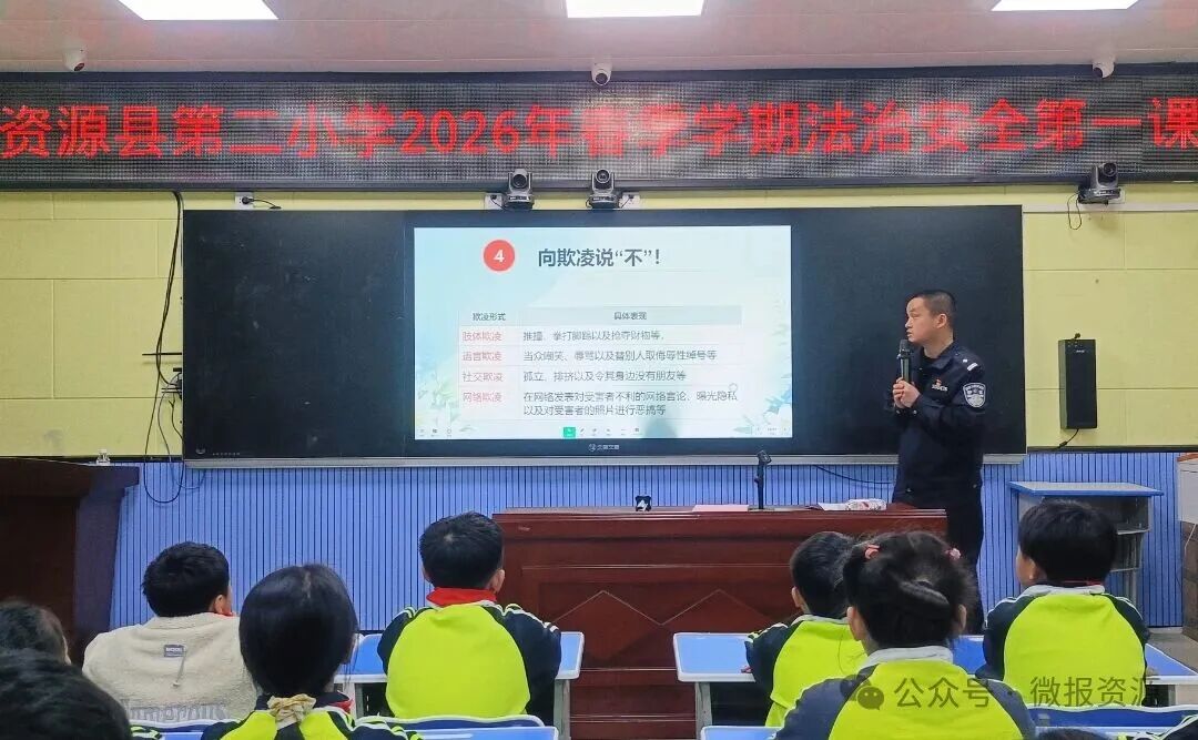 筑牢校园“安全墙” 全力护航助成长——资源派出所到资源县第二小学开展法治安全第一课